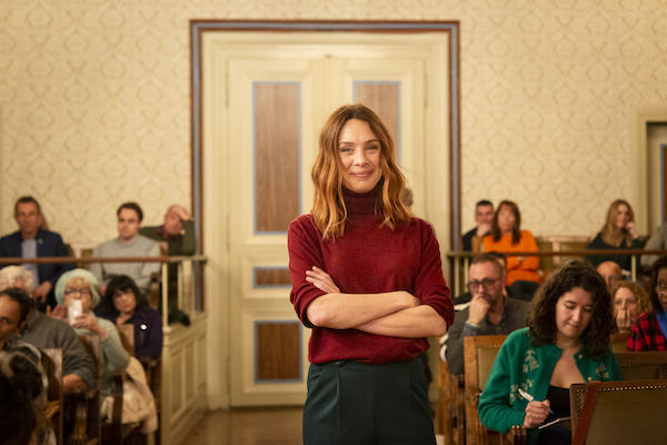 Pour y parvenir, Laetitia Dosch se sert d’un scénario argumenté et construit autour du procès du chien Cosmos, de l’absurdité de la situation qu’elle prend toutefois très au sérieux et d’une palette d’acteurs formidables : François Damiens et son oeil torve, Anne Dorval et son énergique ambition, Mathieu Demy et son incrédule passivité de juge ou encore Jean-Pascal Zadi et sa connexion avec l’altérité. Laetitia Dosch elle-même est formidable, pas dans le registre intense de Jeune femme ou de Passion simple, mais au moins aussi incongrue et déterminée que dans La Bataille de Solférino. Evidemment, il convient de ne rien dévoiler de ce qui se trame dans la vie d’April, mais sachez que le procès du chien changera sa vie.
